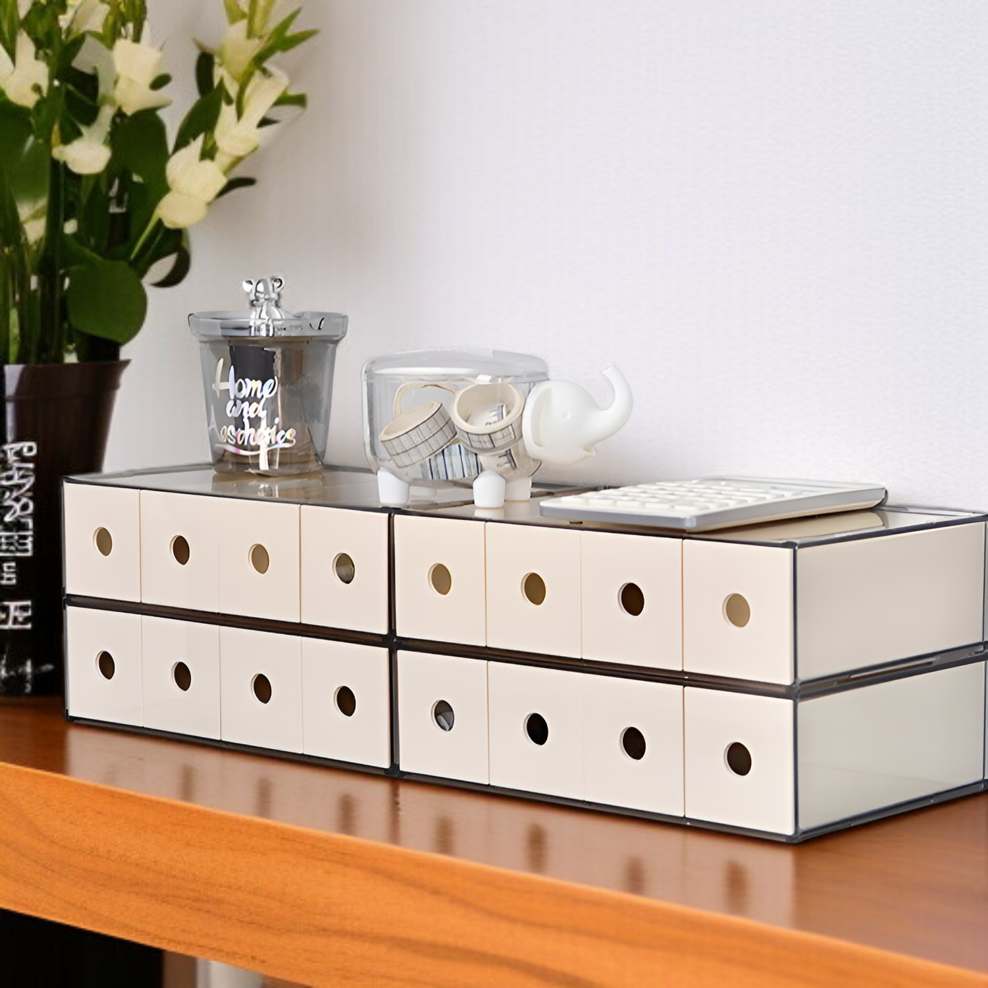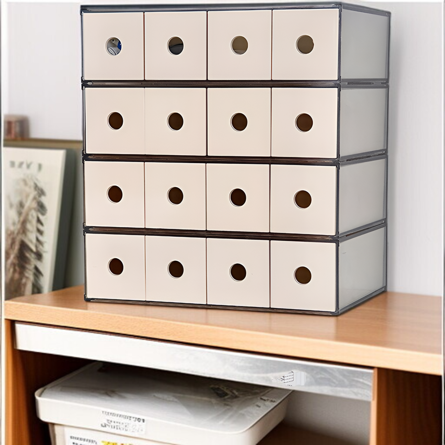 引き出し式収納ボックスは縦横4段に積み重ね可能、マルチグリッド収納ボックス メガネ 口紅収納ボックス ラック